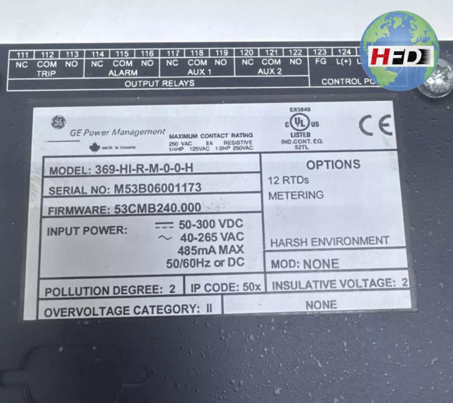 GE 369-HI-0-M-0-0-0-H电机管理继电器
