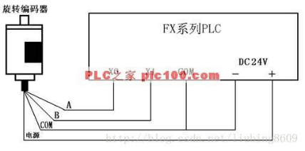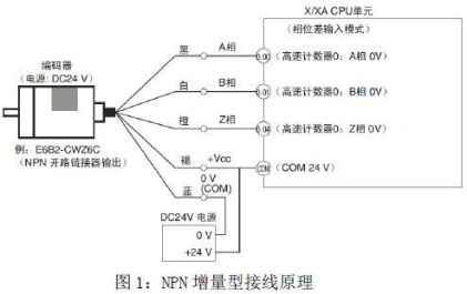 三菱漏型 PLC 与 NPN 编码器的接线图(常用)