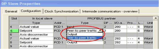 在 Profibus Partner 中选择 Type 类型。Output 表示该值来自于 PLC, Peer-to-peer traffic 表示 来源于 Slave to slave 的 Publisher