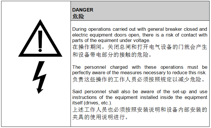 The opening of one of the cabinet doors edactivates the general breaker. It is anyway possible to open one or more doors and prevent