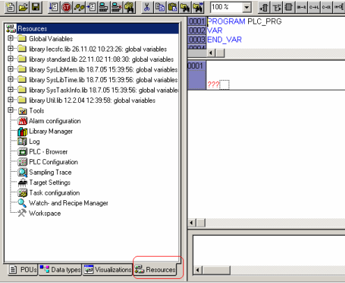 2. 在选择了编程语言后,进入了程序编辑界面。点击左侧窗口下方的[Resources]进入如下界面。