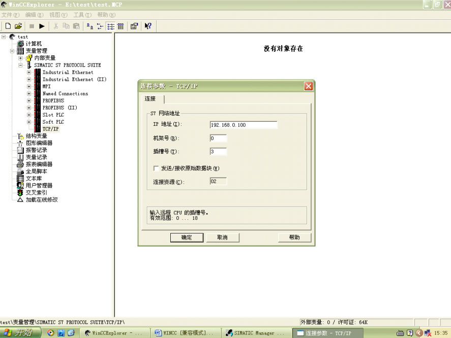 注意事项:如果是S7-300 PLC,那么槽号的参数为2,如果是S7-400 PLC,那么需要根据STEP7项目中硬件组态查看CPU处于第几号槽内,可能的参数为2、3、4(主要依据电源的大小来决定),否则无法建立通讯。