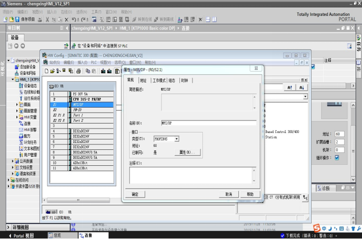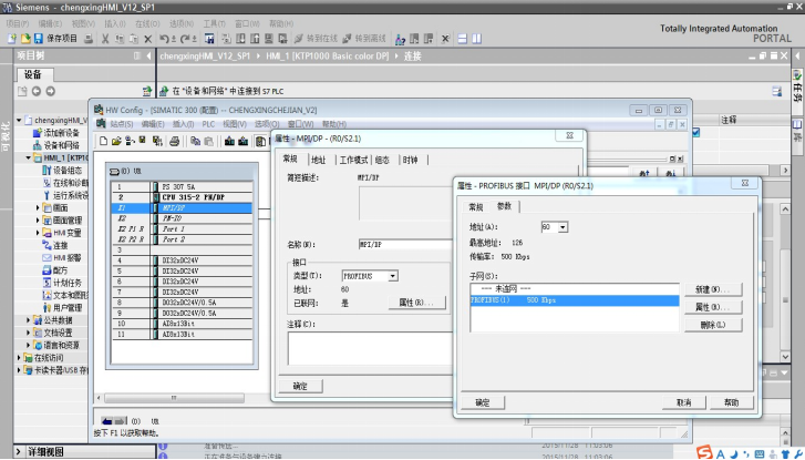 首先,STEP 7里面进行硬件组态(不用把HMI作为从站挂到PROFIBUS总线上,因为HMI是二级主站),设置DP地址及波特率