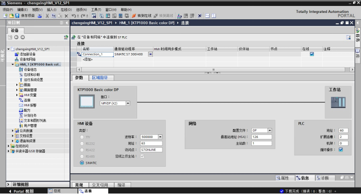 然后,在触摸屏编程软件里面设置连接参数(注意,连接参数需与STEP 7里面的保持一致)